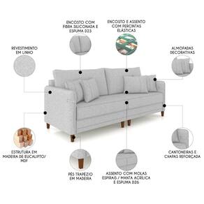 Sofá 2 Lugares Living 172cm Pé Madeira Zoe Linho Cinza Claro Z08 - Mpozenato