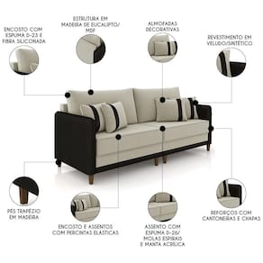 O Sofá 2 Lugares Living 172cm Zoe K04 Veludo Bege/Sintético Preto da Mpozenato é o móvel perfeito para sua Sala de Estar.