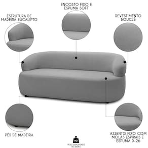Seu encosto é feito de espuma soft, que se adapta ao corpo e proporciona uma sensação agradável. O assento é composto por espuma D-26 e molas espirais, que garantem firmeza e durabilidade. Além disso, o assento é sustentado por percintas elásticas, que aumentam a resistência do Sofá Living. Os braços do sofá são com espuma D-20, que oferecem maciez e apoio. O Sofá Orgânico 2 lugares tem um design moderno e elegante, com um tecido bouclê que se destaca pela sua textura e aparência, que é agradável ao toque e muito confortável. Ele é ideal para quem busca um móvel que valorize a decoração da Sala De Estar e ofereça conforto para os momentos de lazer.