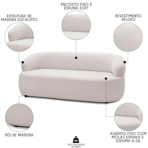 Seu encosto é feito de espuma soft, que se adapta ao corpo e proporciona uma sensação agradável. O assento é composto por espuma D-26 e molas espirais, que garantem firmeza e durabilidade. Além disso, o assento é sustentado por percintas elásticas, que aumentam a resistência do Sofá Living. Os braços do sofá são com espuma D-20, que oferecem maciez e apoio. O Sofá Orgânico 2 lugares tem um design moderno e elegante, com um tecido veludo que se destaca pela sua textura e aparência, que é agradável ao toque e muito confortável. Ele é ideal para quem busca um móvel que valorize a decoração da Sala De Estar e ofereça conforto para os momentos de lazer.