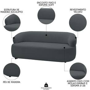 O Sofá 2 Lugares Living Orgânico Sala de Estar 140cm Conka F05 Veludo Grafite, da Mpozenato é um produto que combina qualidade, beleza e conforto.