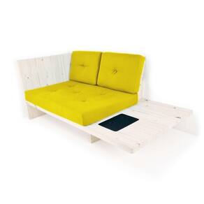 Itens inclusos: 1 Almofada assento, 2 Almofadas Encosto, 1 sofá de Madeira de Pinus com porta copos.