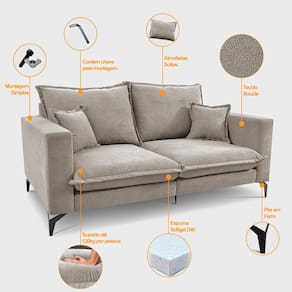 Sofá 2 Lugares Modular Boma. 1,70m Boucle Sofá inBox - Bege Claro