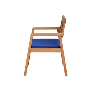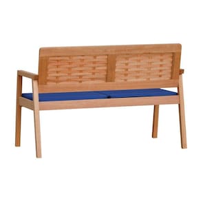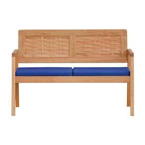 Sofá 2 Lugares/namoradeira Garden Madeira Maciça Assento Estofado Encosto Trançado Madeira - Natural Acquablock Azul