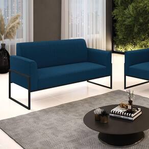 Sofá 2 Lugares Namoradeira Industrial Alta Preto Marisa Bouclê Azul