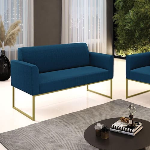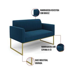 Sofá 2 Lugares Namoradeira Industrial Dourado Marisa Bouclê Azul D03 - D'rossi