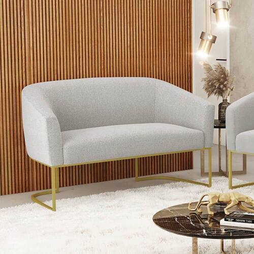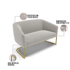 A Namoradeira Stella Bouclê é para todas as ocasiões, é ideal para você relaxar, assistir ou ler um livro, mantendo-o confortável ao longo do dia! Um estofado versátil, que foge do convencional pelo seu design e tecido luxuoso. Seu formato curvo, marcante e sofisticado, oferece conforto de forma excepcional, com aquela sensação de abraço, que deixa o coração quentinho! Desenvolvida com atenção aos detalhes, para atender todas suas expectativas e necessidades. Seu aspecto arredondado e anatômico, possibilita que a postura fique sempre alinhada, mantendo a coluna na posição correta. Ela dispõe de um acabamento impecável, revestida em Bouclê, um tecido maleável que além de ser muito bonito, é a grande tendência do momento, por ser uma lã mais refinada, quente, com toque suave e agradável, semelhante à textura natural da ovelha. Contém uma estrutura robusta, sua sustentação é dada pela Base Industrial no tom Dourado, que garantem mais e firmeza ao sentar-se. Já o enchimento é feito em espuma D-23 no encosto e assento, garantindo maior conforto ao usuário. Ah! Vale a pena lembrar que a Namoradeira Stella Bouclê, foi produzida em quantidades limitadas, para aqueles que procuram criar um visual diferenciado e exclusivo. Então, não deixe de aproveitar esse , hem! Leve a sua agora mesmo.
