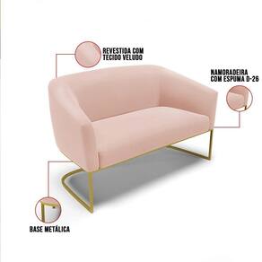 Sofá 2 Lugares Namoradeira Industrial Dourado Stella Veludo Rosê D03 - D'rossi