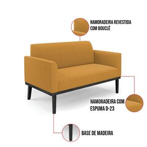 O Sofá Namoradeira 2 Lugares Marisa é a escolha perfeita para quem deseja unir conforto e comodidade em um estilo elegante. Com um design único, ele possui uma Base Fixa de Madeira Preto que harmoniza com o seu belíssimo tom Mostarda, criando uma combinação elegante de conforto e estilo. Ele é perfeito para quem busca móveis que não só sejam bonitos, mas que também proporcionem bem-estar. Ideal para compor salas de estar, recepções, bibliotecas, salas de leitura, espaços de design e até áreas comerciais, essa peça versátil é pensada para ambientes que excluam beleza e aconchego. Sua estrutura, em madeira de reflorestamento de eucalipto, oferece resistência e sustentabilidade, suportando até 180 kg, garantindo segurança para usuários de diferentes biotipos. O conforto é outro destaque, com estofado em espuma prorelax D-23, que proporciona suporte e maciez ideais. Revestido em Bouclê, um tecido maleável e sofisticado, o Sofá Namoradeira 2 Lugares Marisa segue a tendência do momento com um toque suave e quente, remetendo à textura natural da lã. Leve e fácil de transportar, o Sofá Namoradeira 2 Lugares é um item que agrega charme e durabilidade ao seu espaço. Não perca a oportunidade de adquirir essa peça exclusiva que fará toda a diferença na sua decoração e no seu bem-estar. Aproveite agora!