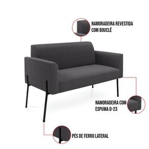 Sofá 2 Lugares Namoradeira Pé Ferro Preto Marisa Bouclê D03 - D`Rossi - Grafite