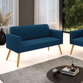Sofá 2 Lugares Namoradeira Pé Palito Castanho Marisa Bouclê Azul