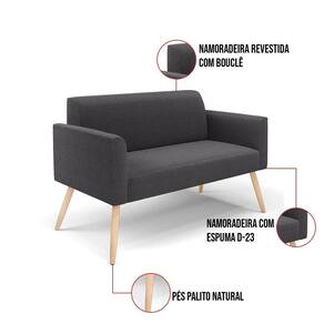Sofá 2 Lugares Namoradeira Pé Palito Natural Marisa Bouclê Grafite D03 - D'rossi