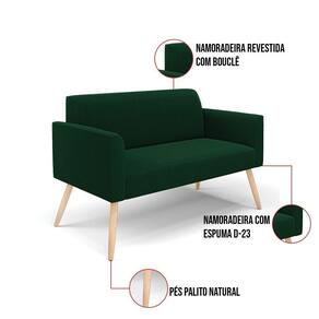 Sofá 2 Lugares Namoradeira Pé Palito Natural Marisa Bouclê Verde D03 - D'rossi