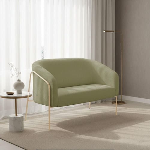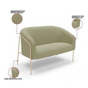 Sofá 2 Lugares Namoradeira Stella Base Industrial Alta Champanhe Bouclê D03 - D`rossi Cor Pistache - Bege