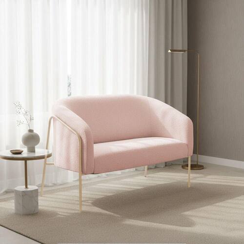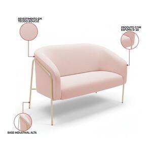 Sofá 2 Lugares Namoradeira Stella Base Industrial Alta Champanhe Bouclê D03 - D'rossi Cor Rose