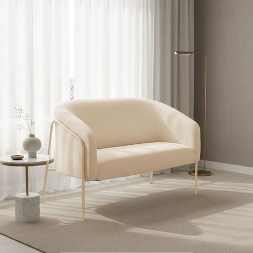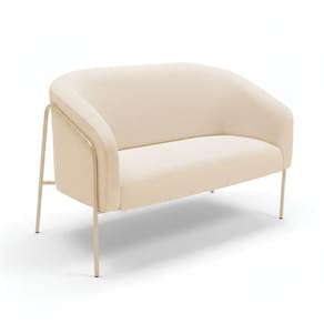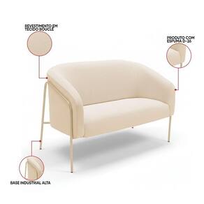Sofá 2 Lugares Namoradeira Stella Base Industrial Alta Dourada Bouclê D03 - D`rossi Bege