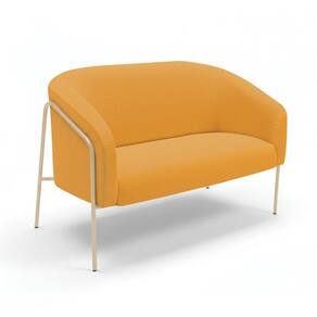 Sofá 2 Lugares Namoradeira Stella Base Industrial Alta Dourada Bouclê Mostarda D03 - D'rossi
