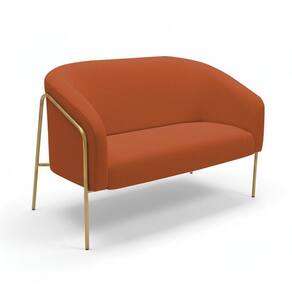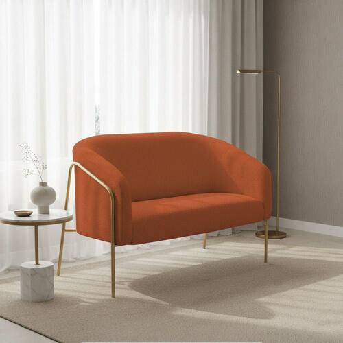 Sofá 2 Lugares Namoradeira Stella Base Industrial Alta Dourada Bouclê Terracota D03 - D'rossi A Namoradeira Stella Base Alta Bouclê Terracota é um móvel que une design moderno, conforto e sofisticação, ideal para compor salas de estar, recepções e ambientes decorativos. Seu formato elegante e estrutura elevada valorizam o espaço, trazendo leveza e requinte à decoração. Produzida com estrutura em madeira de eucalipto reflorestado e base em aço tubular na dourada, garante durabilidade, estabilidade e resistência. O assento em espuma D-26 proporciona firmeza e conforto, enquanto o encosto e os braços em espuma D-23 oferecem um toque macio e ergonômico, se adaptando perfeitamente a diferentes estilos de decoração, do clássico ao contemporâneo. A namoradeira é perfeita para quem busca um sofá pequeno e sofisticado, unindo beleza, qualidade e conforto. O acabamento refinado e o design atemporal fazem dessa peça uma excelente escolha para transformar o ambiente com elegância e estilo. Dimensões do Produto: