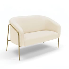 Sofá 2 Lugares Namoradeira Stella Base Industrial Alta Dourada Sintético Pu Bege D03 - D`rossi