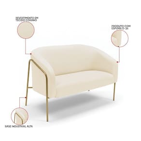 Sofá 2 Lugares Namoradeira Stella Base Industrial Alta Dourada Sintético Pu Bege D03 - D'rossi