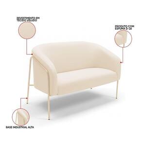 Sofá 2 Lugares Namoradeira Stella Base Industrial Alta Dourada Veludo Bege D03 - D`rossi