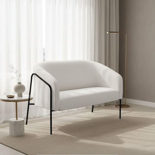 A Namoradeira Stella Base Alta Bouclê é um móvel que une design moderno, conforto e sofisticação, ideal para compor salas de estar, recepções e ambientes decorativos. Seu formato elegante e estrutura elevada valorizam o espaço, trazendo leveza e requinte à decoração. Produzida com estrutura em madeira de eucalipto reflorestado e base em aço tubular na cor preta, garante durabilidade, estabilidade e resistência. O assento em espuma D-26 proporciona firmeza e conforto, enquanto o encosto e os braços em espuma D-23 oferecem um toque macio e ergonômico, se adaptando perfeitamente a diferentes estilos de decoração, do clássico ao contemporâneo. A namoradeira é perfeita para quem busca um sofá pequeno e sofisticado, unindo beleza, qualidade e conforto. O acabamento refinado e o design atemporal fazem dessa peça uma excelente escolha para transformar o ambiente com elegância e estilo.