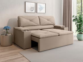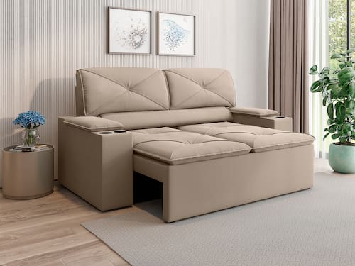 A versatilidade é um ponto forte do modelo Joy, que conta com assento retrátil e encosto reclinável, permitindo que você escolha a posição perfeita para descansar. As almofadas fixas possuem enchimento em fibra siliconizada e flocos de espuma, garantindo um toque macio e aconchegante que abraça o corpo.