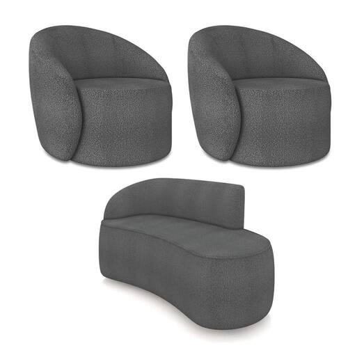 O Kit Sofá 2 Lugares Orgânico 140cm Morgan e 2 Poltronas Lua é um verdadeiro convite ao relaxamento! Ele possui um design orgânico que remete às formas encontradas na natureza que além de se moldar ao corpo humano, evoca uma sensação de calma e equilíbrio criando um espaço acolhedor e relaxante. O revestimento desse maravilhoso conjunto conta com um tecido extremamente elegante no Bouclê Grafite, suportando em média até 180 kg de peso, podendo ser utilizado por pessoas de diferentes biotipos. A Poltrona Lua contém uma simetria artística e curvas suaves, ela contém uma Base Giratória com giro em 360 graus e uma estrutura em madeira de reflorestamento eucalipto, que garante a resistência e a sustentabilidade do produto. Ela tem um acabamento reforçado e espuma de qualidade D23, que oferece maciez e conforto. Ela contém detalhes de costura no encosto e um assento cilíndrico arredondado resultando em um acabamento perfeito conferindo muito mais valor e personalizado ao produto, oferecendo maior liberdade de movimento ao cliente. O Sofá Morgan por sua vez é uma combinação perfeita de conforto e estilo. Com uma estrutura robusta de madeira de eucalipto e MDF, este sofá garante durabilidade e resistência. Os assentos e encostos são fixos, o encosto é preenchido com espuma D-20, proporcionando suporte ideal para suas costas, enquanto o assento com espuma D-23 oferece uma experiência de assento firme e aconchegante. Seu formato curvo e sem braços traz um toque de modernidade, permitindo que o sofá se encaixe harmoniosamente em diversos estilos de decoração, desde o minimalista até o mais ousado. As sapatas plásticas são pequenas proteções colocadas na base dos pés do sofá para evitar que eles risquem ou danifiquem o chão. Além de proteger o piso, essas sapatas ajudam a distribuir o peso do sofá de maneira mais uniforme. Esse lindo conjunto pode ser utilizado em salas de estar, recepções, escritórios, lojas, espaços comerciais, ou qualquer outro espaço que você queira decorar com estilo e bom gosto. O kit Sofá Morgan e 2 Poltronas Lua é um produto que vai fazer a diferença na sua decoração e no seu bem-estar. Ele vai trazer charme, conforto e durabilidade para o seu ambiente. Corra e garanta a sua agora mesmo! OBSERVAÇÃO IMPORTANTE: A entrega é realizada no endereço informado, não realizamos o transporte para andares superiores, como subir escadas, elevadores ou guinchos. Não realizamos montagens, desmontagens ou instalações. Todos esses serviços são de responsabilidade do comprador. Dimensões da Poltrona: Altura Total: 85 cm Largura Total: 91 cm Profundidade Total: 93 cm Altura do Encosto: 42 cm Largura do Assento: 62 cm Profundidade do Assento: 63 cm Altura do Assento: 40 cm Altura do chão ao Assento: 45 cm Largura do encosto: 87 cm Altura dos Pés: 5 cm Peso: 30 kg Dimensões do Sofá: Altura Total: 80 cm Largura Total: 140 cm Profundidade Total: 70 cm Altura do Encosto: 40 cm Largura total livre do Assento: 140 cm Profundidade do Assento: 55 cm Altura dos Pés: 2 cm Altura do chão ao Assento: 45 cm Peso: 25 kg Especificações do Produto: Estrutura: Madeira Eucalipto Reflorestada e MDF Revestimento: BouclêMaterial do Estofamento da Poltrona: D-23, Manta Acrílica e Percintas Elásticas Material do Estofamento do Sofá: Assento D-23; Encosto D-20 e Percintas Elásticas Quantidade de Lugares do Sofá : 2 Lugares Sofá Possui Braça: Não Peso Suportado: Até 180 kg Tipo de Pés: Poltrona com Base Giratória e Sapata Plástica PVC Material da Base da Poltrona: Aço Carbono Tipo de Encosto: Fixo Diferenciais: Design orgânico.Tecido de alta qualidade. Necessita de Montagem: Não Garantia: 90 dias contra defeito de fabricação Instruções de Limpeza: Utilizar um pano limpo e levemente úmido Você irá Receber: 02 Poltronas Giratória e 01 Sofá Orgânico - Entregue em: 02 Volumes