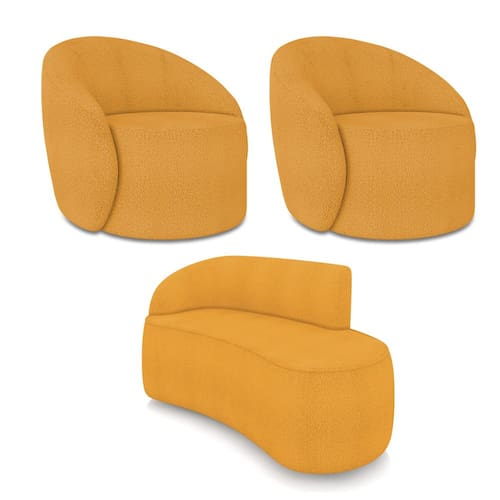 O Kit Sofá 2 Lugares Orgânico 140cm Morgan e 2 Poltronas Lua é um verdadeiro convite ao relaxamento! Ele possui um design orgânico que remete às formas encontradas na natureza que além de se moldar ao corpo humano, evoca uma sensação de calma e equilíbrio criando um espaço acolhedor e relaxante. O revestimento desse maravilhoso conjunto conta com um tecido extremamente elegante no Bouclê Mostarda, suportando em média até 180 kg de peso, podendo ser utilizado por pessoas de diferentes biotipos. A Poltrona Lua contém uma simetria artística e curvas suaves, ela contém uma Base Giratória com giro em 360 graus e uma estrutura em madeira de reflorestamento eucalipto, que garante a resistência e a sustentabilidade do produto. Ela tem um acabamento reforçado e espuma de qualidade D23, que oferece maciez e conforto. Ela contém detalhes de costura no encosto e um assento cilíndrico arredondado resultando em um acabamento perfeito conferindo muito mais valor e personalizado ao produto, oferecendo maior liberdade de movimento ao cliente. O Sofá Morgan por sua vez é uma combinação perfeita de conforto e estilo. Com uma estrutura robusta de madeira de eucalipto e MDF, este sofá garante durabilidade e resistência. Os assentos e encostos são fixos, o encosto é preenchido com espuma D-20, proporcionando suporte ideal para suas costas, enquanto o assento com espuma D-23 oferece uma experiência de assento firme e aconchegante. Seu formato curvo e sem braços traz um toque de modernidade, permitindo que o sofá se encaixe harmoniosamente em diversos estilos de decoração, desde o minimalista até o mais ousado. As sapatas plásticas são pequenas proteções colocadas na base dos pés do sofá para evitar que eles risquem ou danifiquem o chão. Além de proteger o piso, essas sapatas ajudam a distribuir o peso do sofá de maneira mais uniforme. Esse lindo conjunto pode ser utilizado em salas de estar, recepções, escritórios, lojas, espaços comerciais, ou qualquer outro espaço que você queira decorar com estilo e bom gosto. O kit Sofá Morgan e 2 Poltronas Lua é um produto que vai fazer a diferença na sua decoração e no seu bem-estar. Ele vai trazer charme, conforto e durabilidade para o seu ambiente. Corra e garanta a sua agora mesmo!