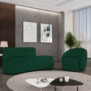 Sofá 2 Lugares Orgânico 140cm Morgan e Poltrona Lua Bouclê D03 - D`Rossi - Verde