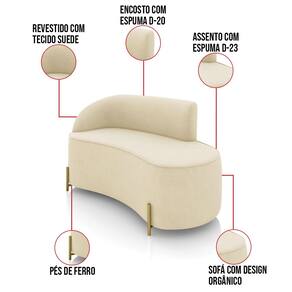 Sofá 2 Lugares Orgânico 140cm Pé Dourado Morgan Suede D03 - D`Rossi - Bege