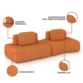 Sofá 2 Lugares Orgânico Com Módulo Central E 1 Canto Berlim Bouclê Cr K01 - D'rossi Cor Caramelo Transforme sua sala de estar com o kit Sofá 2 Lugares Orgânico Berlim com 1 Módulo Central e 1 Módulo Canto no total de 315cm, revestido em Bouclê, projetado para oferecer conforto, estilo e versatilidade. Seu design moderno e minimalista exibe linhas suaves e contornos arredondados, criando um visual elegante que harmoniza com diferentes estilos de decoração. Por ser modular, o conjunto permite diversas composições: os módulos podem ser integrados a outros módulos para formar sofás amplos ou utilizados separadamente como assentos adicionais. O tecido confere toque macio e aparência sofisticada, enquanto a estrutura em madeira de eucalipto com reforços em MDF assegura resistência e durabilidade prolongada. O assento fixo, composto por molas espirais, percintas elásticas e espuma D-33 de alta densidade, proporciona conforto contínuo. Já o encosto solto (Ilha) e as almofadas extra ampliam a sensação de bem-estar. Um conjunto sofisticado e flexível, ideal para sala de estar, escritório ou espaço de convivência. Dimensões Gerais dos Módulos: Altura Total (base/encosto): 72 cm Largura Total: 315 cm Profundidade: Dê 110 a 140 cm Peso Total: 36 kg Dimensões do Módulo Central: Altura Total (base/encosto): 72 cm Largura Total: 140 cm Profundidade: Dê 110 a 140 cm Altura do Assento (do chão): 42 cm Peso Total: 18 kg Dimensões do Módulo Canto: Altura Total (base/encosto): 72 cm Largura Total: 175 cm Profundidade: Dê 110 a 120 cm Altura do Assento (do chão): 42 cm Peso Total: 18 kg Medidas do Encosto e Almofada: Encosto (Ilha): 30cm (A) x 95cm (L) Almofada (Solta): 45cm (A) x 65cm (L) OBSERVAÇÃO IMPORTANTE: A profundidade dos módulos pode variar de acordo com a posição do encosto. Especificações do Produto: Estrutura: Madeira de Eucalipto; Reforços com cantoneiras e chapas em MDF Base: Encosto em fibra siliconada e espuma; assento com percintas elásticas e mola espiral. Espuma do Assento: D-33 (alta qualidade) Revestimento: Bouclê Possui Braços: Não Possui Pés: Sim Material dos Pés: Madeira, fixação por parafusos Possui Rodízios: Não Peso Suportado: Até 150 Kg por módulo Tipo de Encosto: Encosto solto, com enchimento em fibra siliconada Tipo de Assento: Assento fixo, com sustentação de molas e percintas Modularidade: Acompanha almofada solta (100% fibra siliconada); Inclui ilhas com manta acrílica. É Retrátil: Não É Reclinável: Não Diferenciais: Design orgânico e modular, com encosto solto e removível; Módulo independente, podendo ser utilizado sozinho ou combinado com outros módulos da mesma linha. Montagem: O produto é enviado montado Garantia: 90 dias contra defeito de fabricação Instruções de Limpeza: Utilizar um pano limpo e levemente úmido Quantidade de Volumes: 2 Caixas Medida das Embalagens: Caixa 1: Caixa 1: 176 x 140 x 65 cm; Caixa 2: 144 x 118 x 65 cm Peso Total das Embalagens: 38 kg Entrega: É feita somente até o térreo ou portaria. Confira sempre as medidas das embalagens para assegurar que o produto passe por portas e escadas do local.