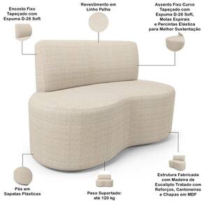 ProductWarranty: 90 dias após o do produto | ProductHeight: 85 cm | Cor: Palha | OriginCountry: | OriginState: PR | Color: Bege | Model: Larissa | ColorFamily: Bege | ColorSimple: Bege | Material: Estutura em Madeira, MDF, Revestimento em Linho e espuma | MaterialFamily: Madeira, MDF, Linho e espuma | ColorSupplier: Palha | ProductWeight: 34 kg | SizeDescription: Altura: 85 cm x Largura: 138 cm x Profundidade: 70 cm | ProductContents: 1 Sofá | SupplierSimpleName: Sofá 2 Lugares Orgânico Para Sala de Estar Living Larissa L02 Linho Palha - Lyam Decor | ProductLength: 70 cm | ProductInstructions: Produto para uso em ambiente interno, nao devendo ficar exposto ao sol, calor e umidade excessivos. | ProductWidth: 138 cm | Fabricante: Lyam Decor | Altura: 85 cm | Cor dos pés: NA | Formato do sofá: Curvo | Largura: 138 cm | É sofá na caixa: NA | Com pés desmontáveis: NA | Inclui colchão: NA | Orientação do Sofá: na | Requer montagem: Não | Unidades por kit: 1 | Mecanismo de abertura do produto: na | Quantidade de Caixas de embalagem: 1 | Estilo: Moderno | Desenho do tecido: Liso | Material do estofamento: Espuma D-26 Soft | Densidade da espuma do assento: Espuma D-26 Soft | Peso: 34 Kg | Inclui manual de montagem: Não | Linha: Sala de Estar, Living | Tipo de produto: Sofá | Profundidade: 70 cm | Peso máximo suportado: 120 kg | Material de enchimento do encosto: Espuma D-26 Soft | Com tecido removível: NA