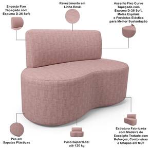 Color: Rosa | SupplierSimpleName: Sofá 2 Lugares Orgânico Para Sala de Estar Living Larissa L02 Linho Rosê- Lyam Decor | ColorFamily: Rosa | ProductLength: 70 cm | ProductWarranty: 90 dias após o do produto | OriginState: PR | MaterialFamily: Madeira, MDF, Linho e espuma | ColorSupplier: Rosê | Model: Larissa | ProductHeight: 85 cm | Cor: Rosê | ProductContents: 1 Sofá | SizeDescription: Altura: 85 cm x Largura: 138 cm x Profundidade: 70 cm | OriginCountry: | ProductWidth: 138 cm | ProductWeight: 34 kg | ColorSimple: Rosa | ProductInstructions: Produto para uso em ambiente interno, nao devendo ficar exposto ao sol, calor e umidade excessivos. | Material: Estutura em Madeira, MDF, Revestimento em Linho e espuma | Estilo: Moderno | Linha: Sala de Estar, Living | Profundidade: 70 cm | Com tecido removível: NA | Tipo de produto: Sofá | Material de enchimento do encosto: Espuma D-26 Soft | Inclui manual de montagem: Não | Material do estofamento: Espuma D-26 Soft | Densidade da espuma do assento: Espuma D-26 Soft | Unidades por kit: 1 | Orientação do Sofá: na | Altura: 85 cm | Formato do sofá: Curvo | Com pés desmontáveis: NA | Peso: 34 Kg | Mecanismo de abertura do produto: na | Requer montagem: Não | Desenho do tecido: Liso | Fabricante: Lyam Decor | Largura: 138 cm | Inclui colchão: NA | Cor dos pés: NA | É sofá na caixa: NA | Quantidade de Caixas de embalagem: 1 | Peso máximo suportado: 120 kg