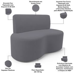 ProductWeight: 34 kg | ProductLength: 70 cm | SizeDescription: Altura: 85 cm x Largura: 138 cm x Profundidade: 70 cm | Color: Cinza | ColorFamily: Cinza | Model: Larissa | ProductWarranty: 90 dias após o do produto | ProductHeight: 85 cm | ProductWidth: 138 cm | ProductInstructions: Produto para uso em ambiente interno, nao devendo ficar exposto ao sol, calor e umidade excessivos. | Cor: Cinza | ColorSimple: Cinza | ColorSupplier: Cinza | Material: Estutura em Madeira, MDF, Revestimento em Suede e espuma | MaterialFamily: Madeira, MDF, Suede e espuma | OriginCountry: | OriginState: PR | ProductContents: 1 Sofá | SupplierSimpleName: Sofá 2 Lugares Orgânico Para Sala de Estar Living Larissa L02 Suede Cinza - Lyam Decor | Densidade da espuma do assento: Espuma D-26 Soft | Estilo: Moderno | Desenho do tecido: Liso | Unidades por kit: 1 | Mecanismo de abertura do produto: na | Orientação do Sofá: na | Requer montagem: Não | Altura: 85 cm | Quantidade de Caixas de embalagem: 1 | Fabricante: Lyam Decor | Cor dos pés: NA | Tipo de produto: Sofá | Formato do sofá: Curvo | Peso: 34 Kg | Largura: 138 cm | Linha: Sala de Estar, Living | Material do estofamento: Espuma D-26 Soft | Com pés desmontáveis: NA | Material de enchimento do encosto: Espuma D-26 Soft | Inclui manual de montagem: Não | Peso máximo suportado: 120 kg | Profundidade: 70 cm | Com tecido removível: NA | É sofá na caixa: NA | Inclui colchão: NA