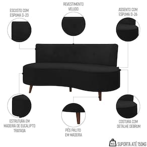 Altura: 85 cm | AssemblyRequired: Sim, sugerimos a contratação do nosso serviço de montagem (para os CEPs em que o serviço está dispon | Color: Preto | ColorFamily: Preto | ColorSimple: Preto | ColorSupplier: Preto | Cor: Preto | Gênero: Unisex | Largura: 135 cm | Manual: Sim | Marca: Mpozenato | Material: Madeira de Eucalipto | MaterialFamily: Madeira de Eucalipto | Model: Korah | Origem: | OriginCountry: | OriginState: PR | Peso: 28 kg | Peso Suportado: 150 kg | ProductContents: 1 Sofá | ProductHeight: 85 | ProductInstructions: Produto para uso em ambiente interno, nao devendo ficar exposto ao sol, calor e umidade excessivos. | ProductLength: 78 | ProductWarranty: 90 dias após o do produto | ProductWeight: 28 | ProductWidth: 135 | Profundidade: 78 cm | Requere montagem: Sim | SizeDescription: 85 x 135 x 78 cm | SupplierSimpleName: Sofá 2 Lugares para Sala Living 135cm Pés Palito Korah K04 Veludo Preto - Mpozenato | Tipo de : Fabricante