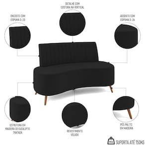 Moderno, elegante, versátil e funcional - esses são apenas alguns dos adjetivos que melhor definem o Sofá 2 Lugares para Sala Living 135cm Pés Palito Tamar K04 Veludo Preto, da Mpozenato.