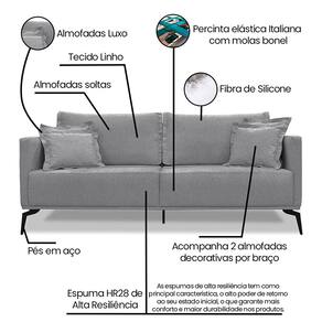 Sofá 2 Lugares Pé de Ferro Preto Rafaela 160 cm Linho S04 - D`Rossi - Cinza