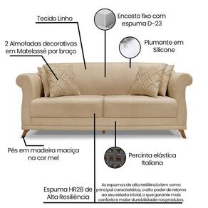 O Sofá 2 Lugares Julieta é uma mobília que combina elegância, conforto e durabilidade. Ele tem um design moderno e sofisticado, com pés em madeira maciça na cor mel e revestimento em tecido Linho, que harmonizam com qualquer ambiente. Ele é ideal para sala de estar, recepções ou qualquer outro espaço que você queira decorar com estilo e bom gosto. Ele tem uma estrutura em madeira de reflorestamento eucalipto, que garante a resistência e a sustentabilidade do produto. Com medidas de 160 cm ele suporta Até 120 Kg de peso, podendo ser utilizado por pessoas de diferentes biotipos. Ele tem um acabamento reforçado com espuma de qualidade no encosto D23 e plumante em silicone, que oferece maciez e aconchego. Acompanha 2 almofadas decorativas ( Enchimento fibra de silicone) bordadas em matelassê por braço. Ele tem assento Fixo com percintas elásticas italiana, espuma HR 28 e plumante em silicone, que proporcionam flexibilidade e conforto. Tem pés em madeira maciça com altura de 12 cm, que protegem o produto contra corrosão e desgaste. O sofá Julieta é um produto de alta qualidade, beleza e funcionalidade. Ele é fácil de transportar, pois tem um peso leve e um tamanho compacto. O sofá Julieta é um produto que vai fazer a diferença na sua decoração e no seu bem-estar. Ela vai trazer charme, conforto e durabilidade para o seu ambiente. Aproveite essa oferta e leve para casa um sofá de qualidade por um preço incrível. Essa é a sua chance de ter um sofá maravilhoso por um preço imperdível. Corra e garanta o seu antes que acabe o estoque!