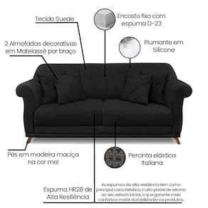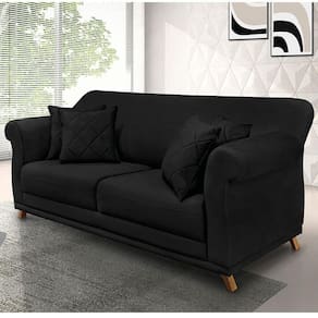 Sofá 2 Lugares Pé De Madeira Julieta 160 Cm Suede S04 - D'rossi Cor Preto O Sofá 2 Lugares Julieta é uma mobília que combina elegância, conforto e durabilidade. Ele tem um design moderno e sofisticado, com pés em madeira maciça na cor e revestimento em tecido Suede, que harmonizam com qualquer ambiente. Ele é ideal para sala de estar, recepções ou qualquer outro espaço que você queira decorar com estilo e bom gosto. Ele tem uma estrutura em madeira de reflorestamento eucalipto, que garante a resistência e a sustentabilidade do produto. Com medidas de 160 cm ele suporta até 120 kg de peso, podendo ser utilizado por pessoas de diferentes biotipos. Ele tem um acabamento reforçado com espuma de qualidade no encosto D23 e plumante em silicone, que oferece maciez e aconchego. Acompanha 2 almofadas decorativas ( Enchimento fibra de silicone) bordadas em matelassê por braço. Ele tem assento Fixo com percintas elásticas italiana, espuma HR 28 e plumante em silicone, que proporcionam flexibilidade e conforto. Tem pés em madeira maciça com altura de 12 cm, que protegem o produto contra corrosão e desgaste. O sofá Julieta é um produto de alta qualidade, beleza e funcionalidade. Ele é fácil de transportar, pois tem um peso leve e um tamanho compacto. O sofá Julieta é um produto que vai fazer a diferença na sua decoração e no seu bem-estar. Ela vai trazer charme, conforto e durabilidade para o seu ambiente. Aproveite essa e leve para casa um sofá de qualidade por um preço incrível. Essa é a sua chance de ter um sofá maravilhoso por um preço imperdível. Corra e garanta o seu antes que acabe o estoque! Dimensões do Sofá: Altura total: 90 cm Largura total: 160 cm Profundidade total: 82 cm Peso: 43 kg Altura do Braço: 74 cm Altura do chão ao Assento: 45 cm Altura do Encosto: 45 cm Profundidade do Assento: 55 cm Largura do Braço: 22 cm Altura dos pés: 12 cm Especificações do Produto Estrutura: Madeira de Eucalipto Reflorestada Espuma: D-23 Tipo de Encosto: Fixo com Plumante em Silicone Tipo de Assento: Fixo com Espuma HR 28, Percinta Elástica Italiana Quantidade de Lugares: 2 Lugares Tecido: Suede Diferenciais: Acompanha 02 Almofadas Decorativas em Matelassê por Braço Tipo de pés: Pés Madeira Maciça na cor Peso suportado: Até 120 Kg Garantia: 90 dias contra de fabricação Montagem: O produto é enviado montado, sendo necessário somente parafusar os pés Instruções de limpeza: Utilizar um pano limpo e levemente úmido Você irá receber: 01 Sofá Entregue em: 01 Volume