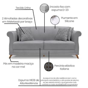 O Sofá 2 Lugares Julieta é uma mobília que combina elegância, conforto e durabilidade. Ele tem um design moderno e sofisticado, com pés em madeira maciça na cor mel e revestimento em tecido Linho Cinza, que harmonizam com qualquer ambiente. Ele é ideal para sala de estar, recepções ou qualquer outro espaço que você queira decorar com estilo e bom gosto. Ele tem uma estrutura em madeira de reflorestamento eucalipto, que garante a resistência e a sustentabilidade do produto. Com medidas de 180 cm ele suporta Até 140 Kg de peso, podendo ser utilizado por pessoas de diferentes biotipos. Ele tem um acabamento reforçado com espuma de qualidade no encosto D23 e plumante em silicone, que oferece maciez e aconchego. Acompanha 2 almofadas decorativas ( Enchimento fibra de silicone) bordadas em matelassê por braço. Ele tem assento Fixo com percintas elásticas italiana, espuma HR 28 e plumante em silicone, que proporcionam flexibilidade e conforto. Tem pés em madeira maciça com altura de 12 cm, que protegem o produto contra corrosão e desgaste. O sofá Julieta é um produto de alta qualidade, beleza e funcionalidade. Ele é fácil de transportar, pois tem um peso leve e um tamanho compacto. O sofá Julieta é um produto que vai fazer a diferença na sua decoração e no seu bem-estar. Ela vai trazer charme, conforto e durabilidade para o seu ambiente. Aproveite essa oferta e leve para casa um sofá de qualidade por um preço incrível. Essa é a sua chance de ter um sofá maravilhoso por um preço imperdível. Corra e garanta o seu antes que acabe o estoque!