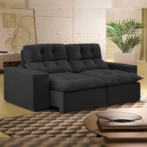 O assento de pillow com mix de fibra siliconada e espuma. Possui mecanismo retrátil em aço que permite abertura do sofá para seu bem-estar.