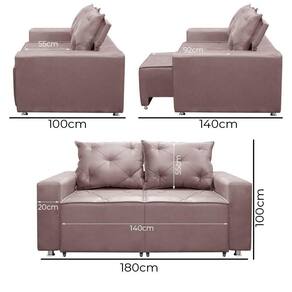 Dimensoes do Produto: Largura: 180 cm Altura: 100 cm. Profundidade: 100 cm. Altura do chao ao assento: 45 cm Largura do Braco: 20 cm Medidas Internas do Assento: 140 x 55 cm Peso: 55 KG