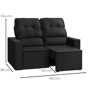 Dimensões do Produto: Largura: 150 cm Altura: 104 cm. Profundidade: 98 cm. Altura do chão ao assento: 45 cm Largura do Braço: 15 cm Medidas Internas do Assento: 120 x 55 cm Peso: 46 KG
