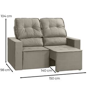 Dimensões do Produto: Largura: 150 cm Altura: 104 cm. Profundidade: 98 cm. Altura do chão ao assento: 45 cm Largura do Braço: 15 cm Medidas Internas do Assento: 120 x 55 cm Peso: 46 KG