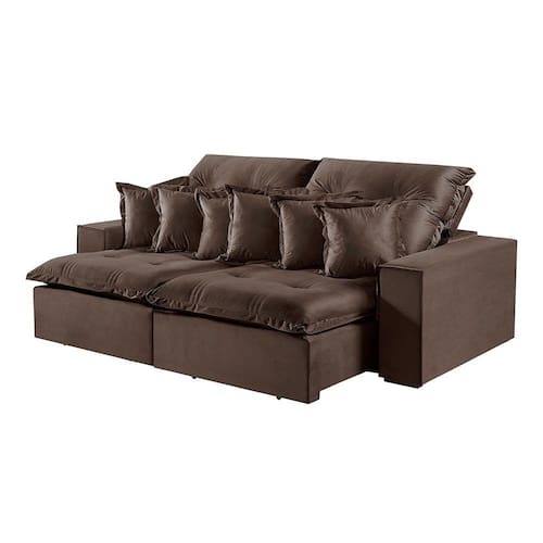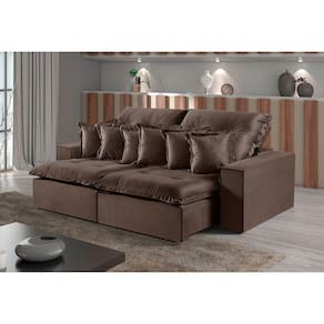 Características: Material: Veludo Requer Montagem?: Sim Acessóios inclusos: Almofadas Decorativas Acompanha Chaise?: Não Tipo do Acento, tem Pillow Top?: Retrátil, Com Pillow Top De 20 Cm Densidade Espuma Assento: D-28 Possui Mola no Assento? Tipo de mola?: Sim, Molas Ensacadas Possui Persinta? Tipo de Persinta: Sim, Percinta Elastica Tipo do Encosto: Reclinável Amofadas do encosto Fixa ou Solta?: Encosto Reclinável, Almofadas Fixa Densidade Espuma Encosto: 100 Fibra Silicone Posui Pés -Sim ou Não-: Sim Quantidade de Pés: 8 Tipo de Pés -Material-: Madeira Acompanha Rodízio -Sim ou Não-: Sim Quantidade de Rodízios: 2 Rodízios Material Rodízio: Silicone Matéria Prima: Elcalipto Tratado Revestimento: Espuma D-28 Soft Madeira Aparelhada ou Bruta?: Aparelhada A Madeira é Tratada? -Sim ou Não-: Sim Tipo de Trilho Onde Corre o Retrátil?: Tubo Pintado É Bipartido ou Inteiriço?: Bipartido Estagios da Catraca: Catacra 5 Estágios