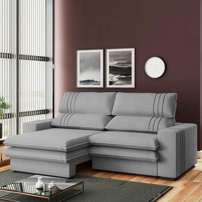 Sofá 2 Lugares Retrátil Noruega 270 Cm Veludo Pés Tabaco - D'rossi Cor Cinza
