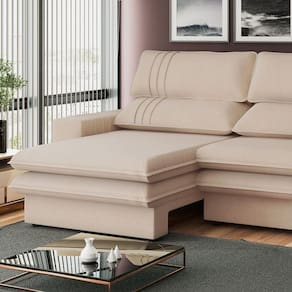 Sofá 2 Lugares Retrátil Noruega 270 Cm Veludo Pés Tabaco - D'rossi Cor Off White