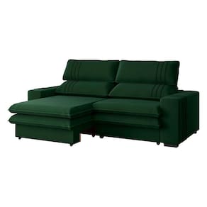 Sofá 2 Lugares Retrátil Noruega 270 Cm Veludo Verde Militar Pés Tabaco - D'rossi