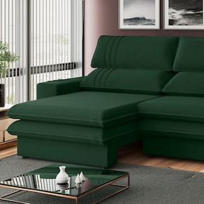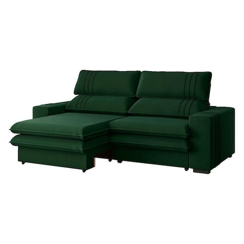 A vantagem de ter um Sofá Noruega não é apenas pela estética, mas sim pelo conforto proporcionado por ele enquanto você descansa. De acordo com especialistas, os maiores problemas de dores nas costas, além da má postura dos vícios do dia a dia, é dado pelo uso constante de sofá com péssima qualidade e acabamento. E pensando no seu bem estar e na prevenção de doenças relacionadas à coluna, a dica de hoje é o Sofá Juti, pois a excelência na qualidade começa desde a escolha dos materiais até a entrega do produto. Suas medidas são de 270 cm, estrutura em madeira de reflorestamento tratada (eucalipto). Percintas elásticas no encosto, percintas elásticas com molas ensacadas no assento. Assento retrátil com espuma D-26 de alta densidade, permitindo uma melhor sustentação. Encosto 100% de fibra siliconada, braços com espuma D-23 de excelente qualidade. Encosto reclinável com catraca de ativação em até 4 posições e Pés de Plástico Tabaco que traz muita segurança e conforto. Revestido com tecido veludo no tom Verde Militar, possibilitando uma enorme suavidade ao toque. Ideal para acomodar toda a sua família! E aí, ainda tem dúvida sobre a escolha do seu sofá? Teremos prazer em ajudar!